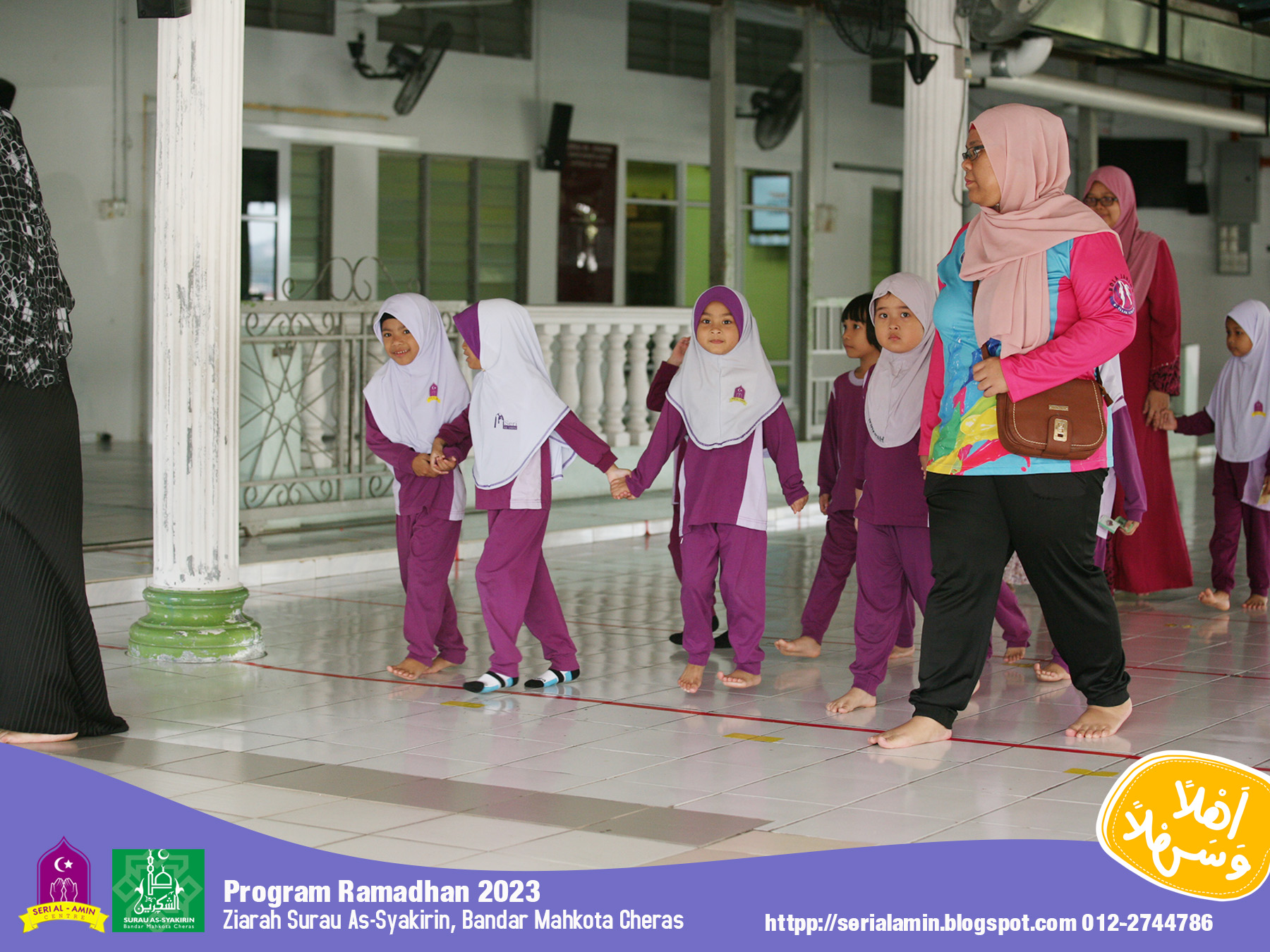 Sempena bulan Ramadhan Al-Mubarak tahun ini, SAC mengadakan ziarah ringkas membawa anak-anak kami ke Surau Assyakirin. Antara kesempatan yang diambil melihat kawasan-kawasan sekeliling, mimbar, tempat imam dan azan, sambil mendengar kisah ringkas Bilal Bin Robbah, sedekah di tabung surau dan solat sunat berjemaah.